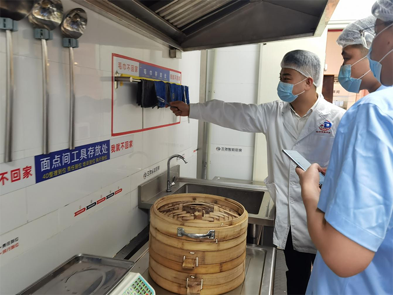 “4D廚房”主要通過分區(qū)、分類、分層、分顏色等操作流程,實(shí)現(xiàn)經(jīng)營現(xiàn)場的整齊劃一、整潔有序,打造透明、安全的健康廚房。